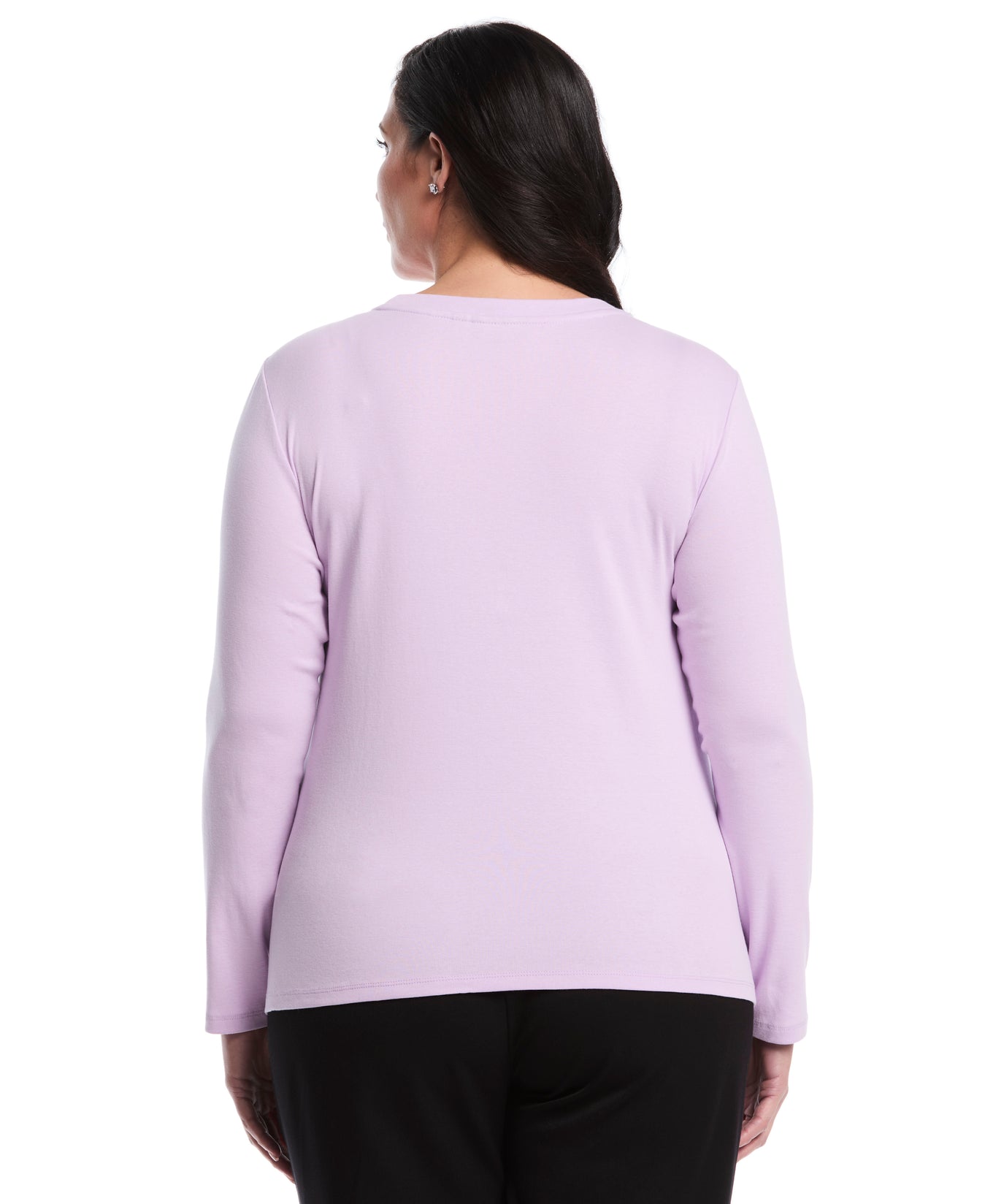Cozy style can still be chic with this Rafaella women's top. The crew neck is adorned with faux pearls and rhinestones to add a bit of sparkling glamour to your smart-casual look. Made for effortless wear, this long sleeve top has a flattering and comfortable classic fit while the ribbed cotton fabric adds visual interest and texture.