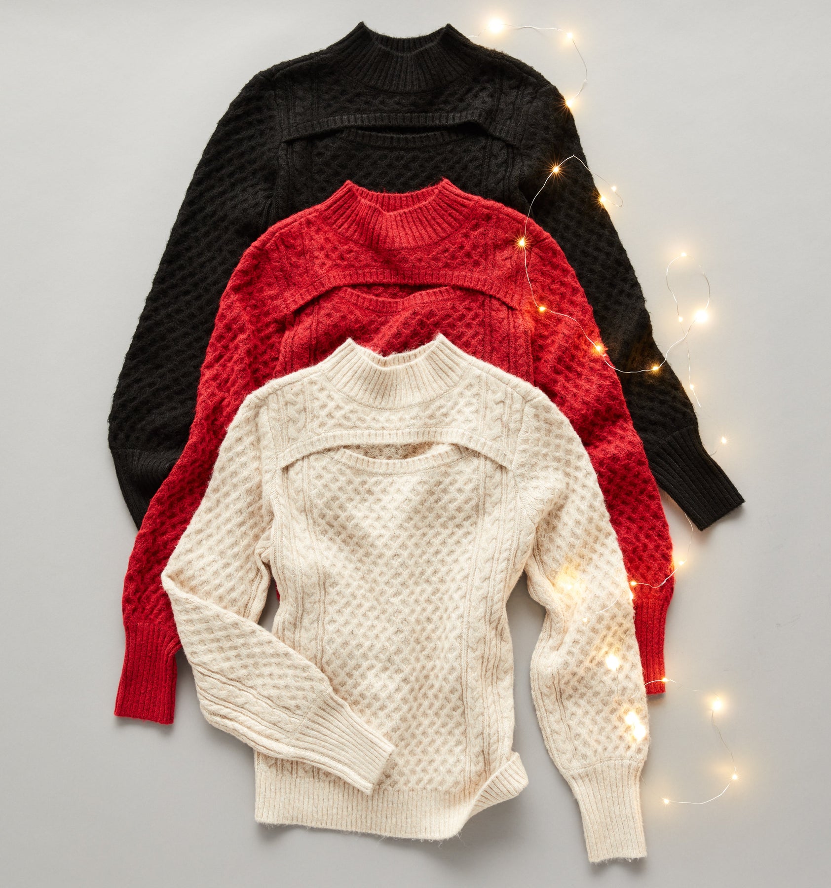 Add an unexpected twist to your everyday outfits with this Rafaella women's pullover sweater. This comfy classic cable knit sweater features a fashionable cut out at the chest for a chic, modern look. Extended ribbing at the collar, cuffs and hem completes the stylish look while providing a secure-but-flexible fit.