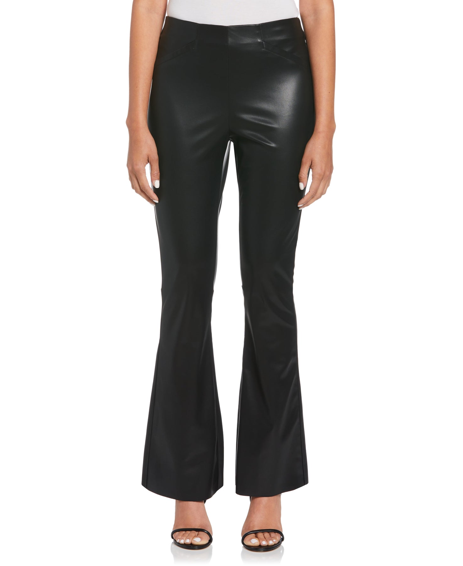 Add some edge to your casual wardrobe with these classic faux leather pants from Ella. The vegan-friendly women’s pants feature a flattering high waist and they’re designed to pull on quickly and easily. Great for pairing with everything from ripped band t-shirts to elegant ruffled blouses, the versatile ladies’ pants have a comfortable modern fit and a classic boot cut leg.