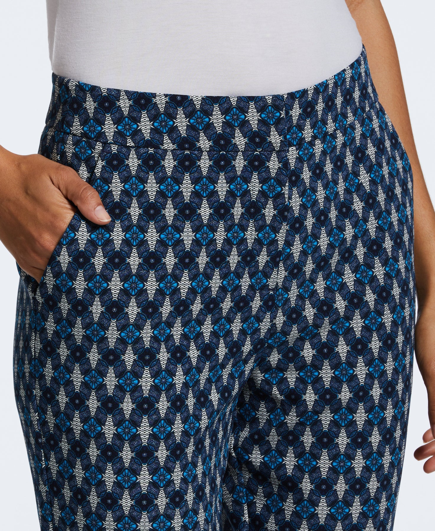 Experience impressive comfort with these cropped wide leg culotte pants from Rafaella. Crafted from a stretchy double weave fabric, the culottes offer both durability and a flattering fit. Details like a zipper with hook and bar closure, front slash pockets, back welt pockets and darts at the back add a great balance of form and function. The all-over medallion print adds a touch of class for a timeless look that will take you from the office to the weekend in effortless style. Versatile and easy to wear, these cropped culottes will quickly become a key part of your wardrobe.