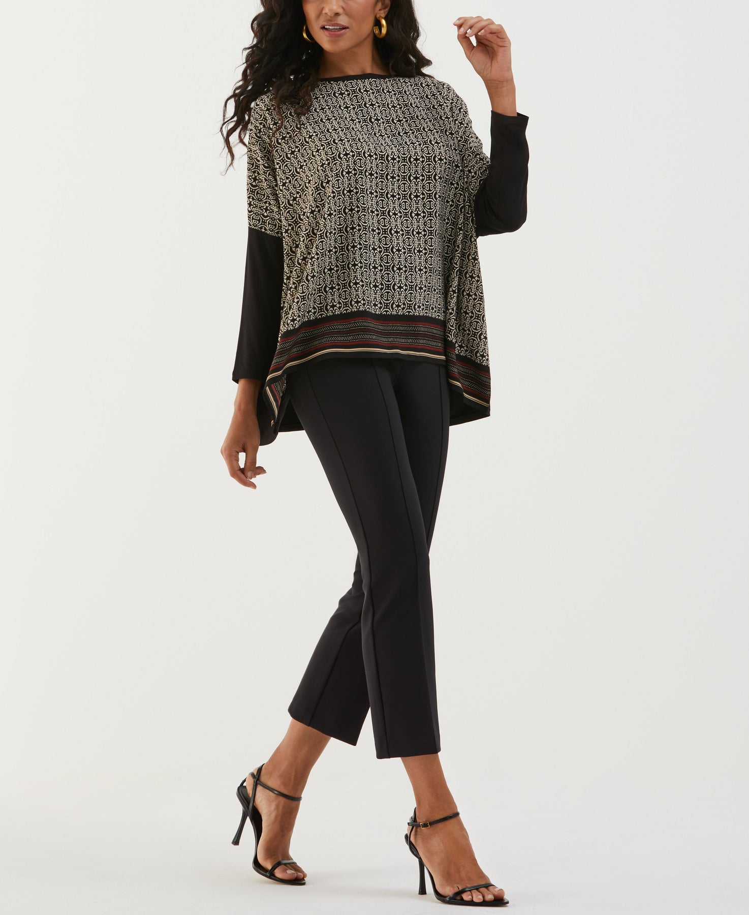 Covered with a funky medallion print, this ELLA Rafaella 3/4 sleeve women’s top will be an eye-catching addition to your wardrobe. It’s crafted with a woven fabric at the front and knit fabric at the back, which help to create an elegant, modern look. Great for everyday wear at family functions, at home or out on the town, the versatile ladies’ top has a classic crew neckline.