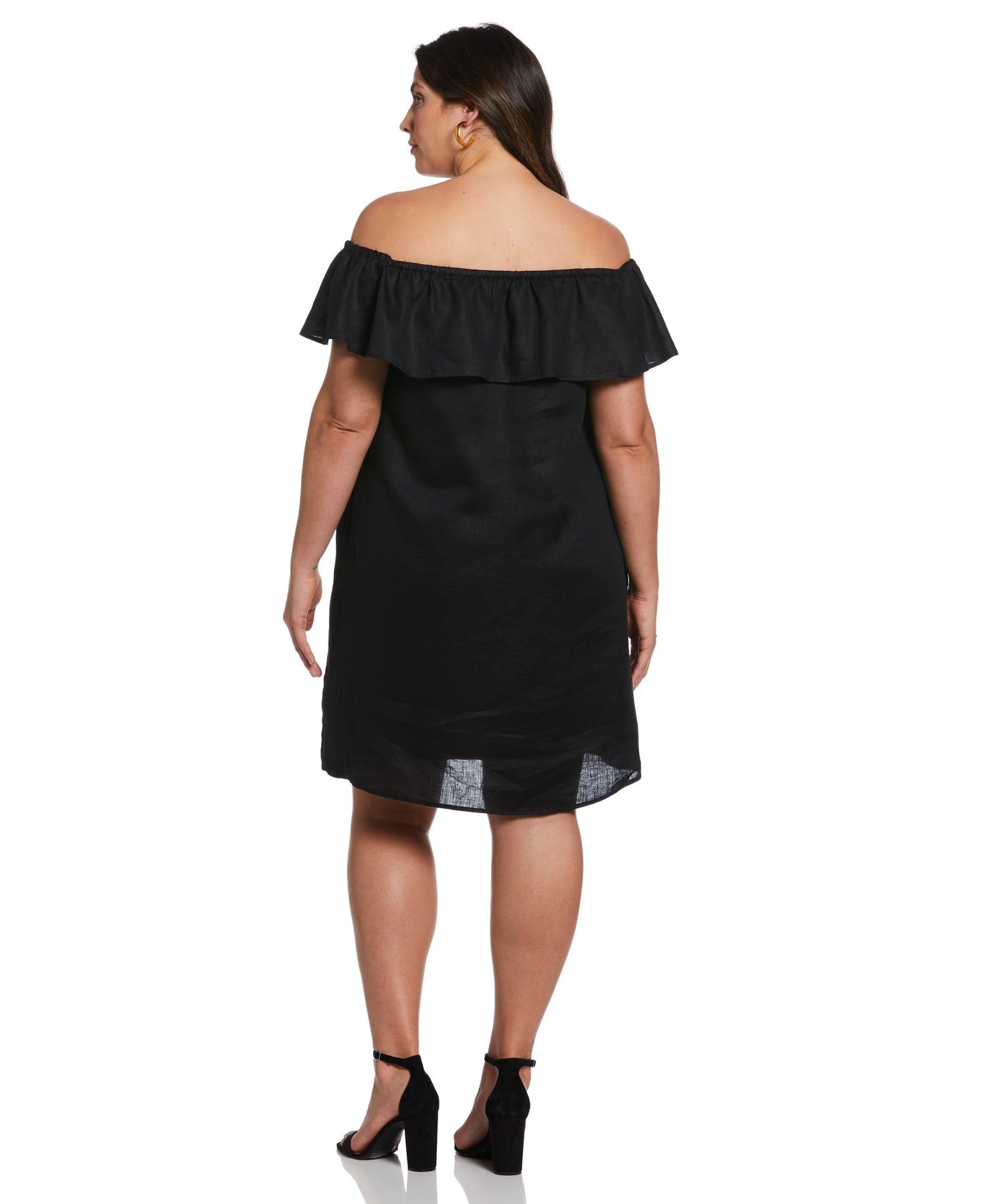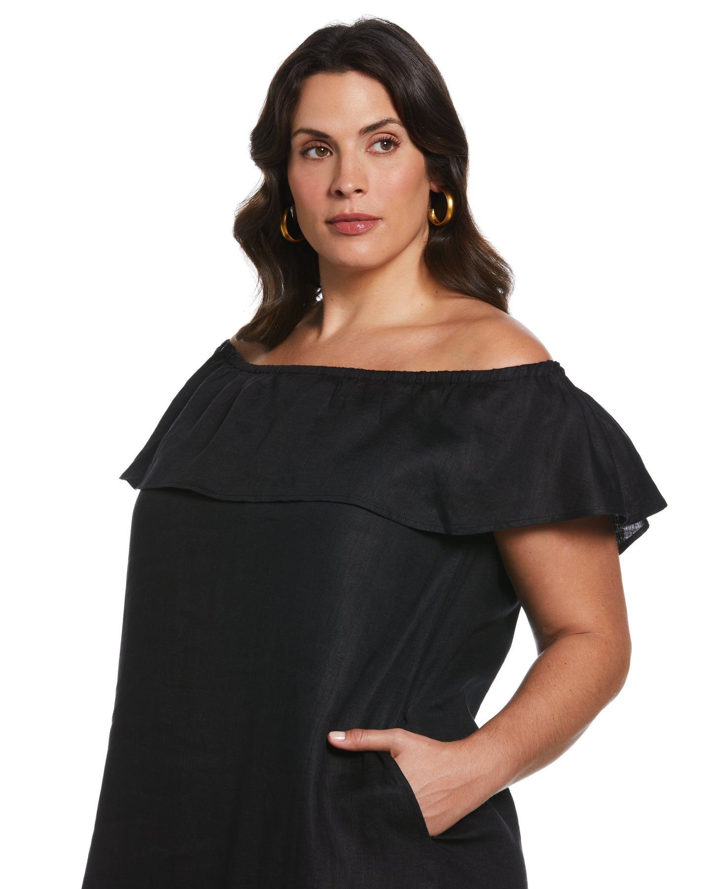 This Rafaella linen dress is designed to feel as good as it looks. The breathable 100% linen fabric and off-the-shoulder design give this women's dress an airy look and feel you'll love. The top ruffle and draped body add softness and movement to help create a fashionably feminine silhouette.