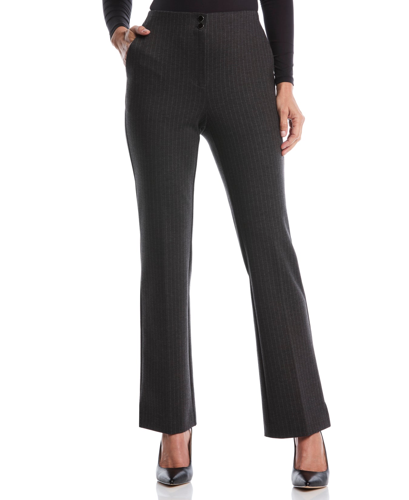Elevate your look with these Rafaella women's bootcut dress pants. The bootcut design and pinstripe pattern elongate your shape to give your professional wear a flattering finishing touch. These women's pants are made from stretch fabric with an elasticized waistband for a comfortable fit and feel. Non-functional pockets add a smart finishing touch that keeps your silhouette sleek.