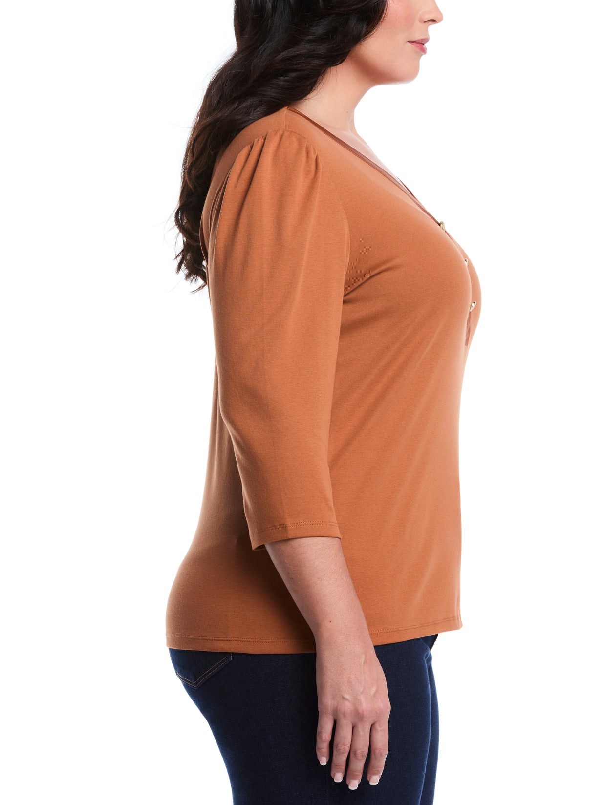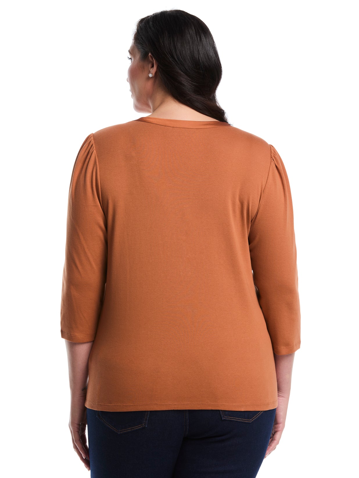 Plus Size 3/4 Puff Sleeve V-Neck Top (Mocha Bisque)