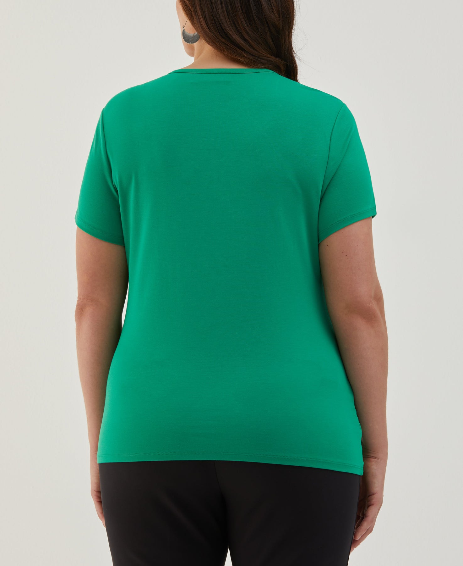An asymmetrical faux side wrap adds a sophisticated, flattering twist to this women’s short sleeve shirt from ELLA Rafaella. The versatile solid-colored top is crafted from ponte knit fabric, which gives it a smooth surface and a comfortable hint of stretch. A smart everyday shirt, this ladies’ top can pair effortlessly with everything from work attire to jeans.