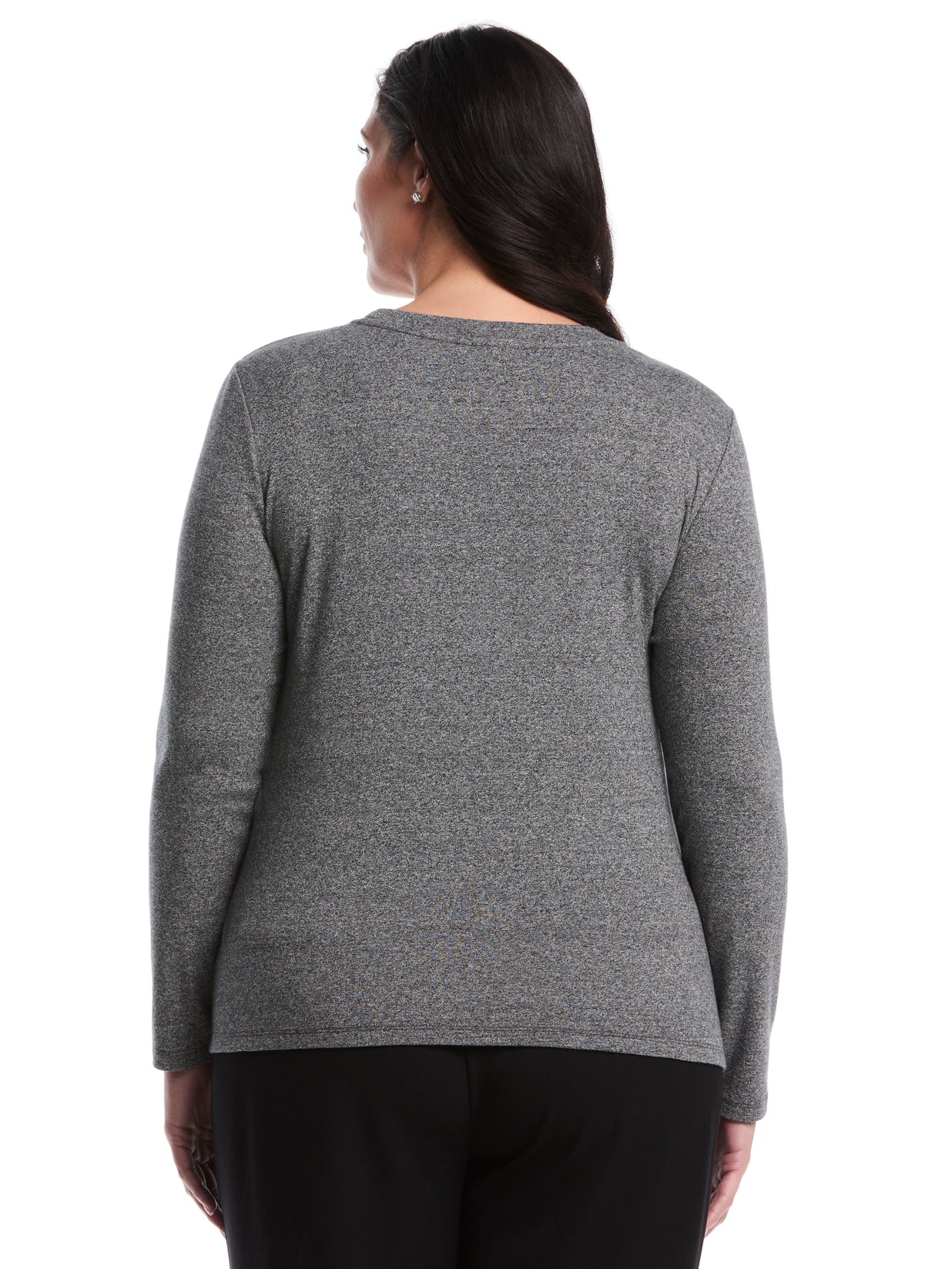 Cozy style can still be chic with this Rafaella women's top. The crew neck is adorned with faux pearls and rhinestones to add a bit of sparkling glamour to your smart-casual look. Made for effortless wear, this long sleeve top has a flattering and comfortable classic fit while the ribbed cotton fabric adds visual interest and texture.