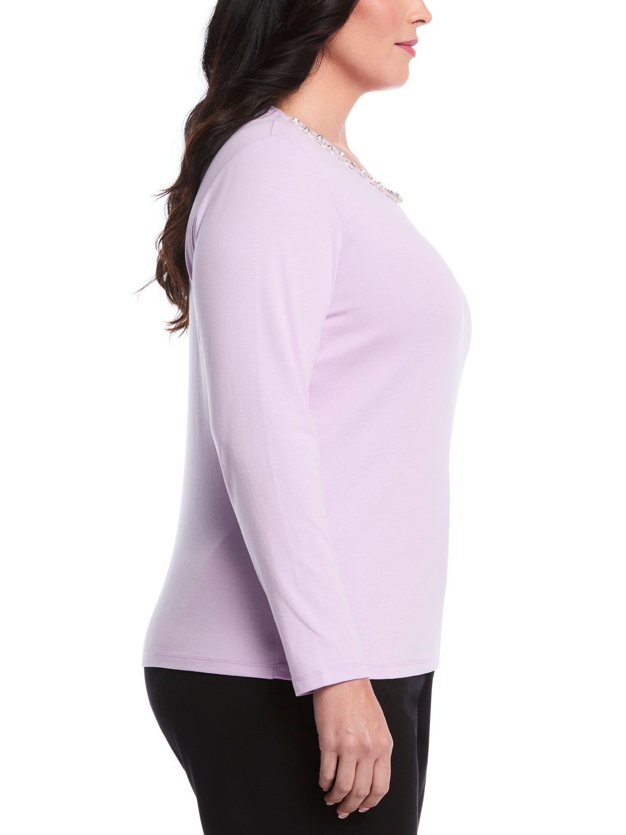 Plus Size Embellished Neck Top (Orchid Bloom)
