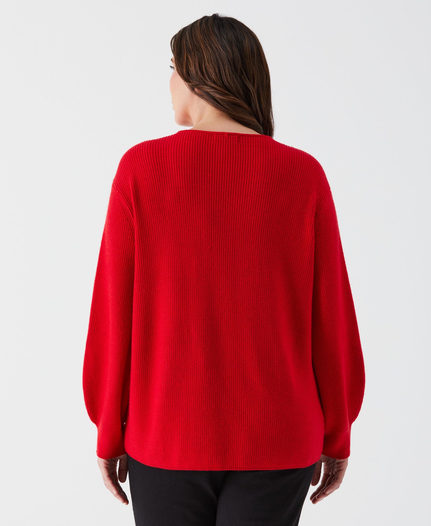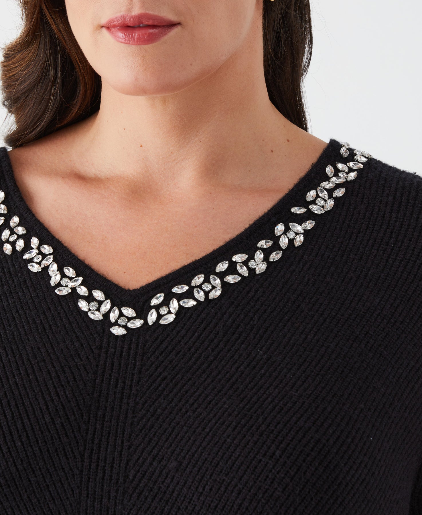 This elegant women's sweater from Ella Rafaella is all about the details. A textured ribbed sweater knit fabric adds softness and warmth, while faux crystal and pearl embellishments at the V-neck collar elevate the versatile design. The modern fit and 25" hip length help make this long sleeve sweater a flattering and comfortable option for day or night.
