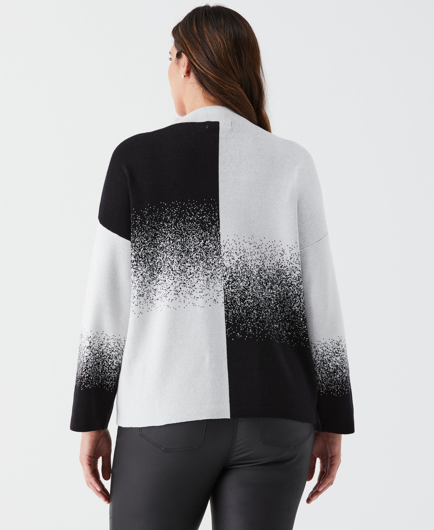 Heat things up when the weather cools with this fashionable Ella Rafaella ombre sweater. This hip-length women's pullover sweater exudes everyday sophistication with a classic turtleneck design and stylish drop shoulders. The ombre pattern transitions subtly, creating a unique visual appeal. Made from sweater knit fabric, it provides cozy warmth while the jacquard fabrication introduces a delicate two-color geometric pattern into the material.