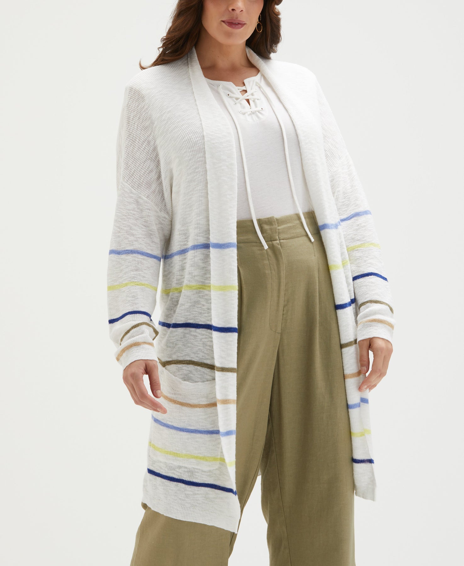 Plus Size Organic Cotton-Linen Blend Striped Duster Cardigan Sweater
