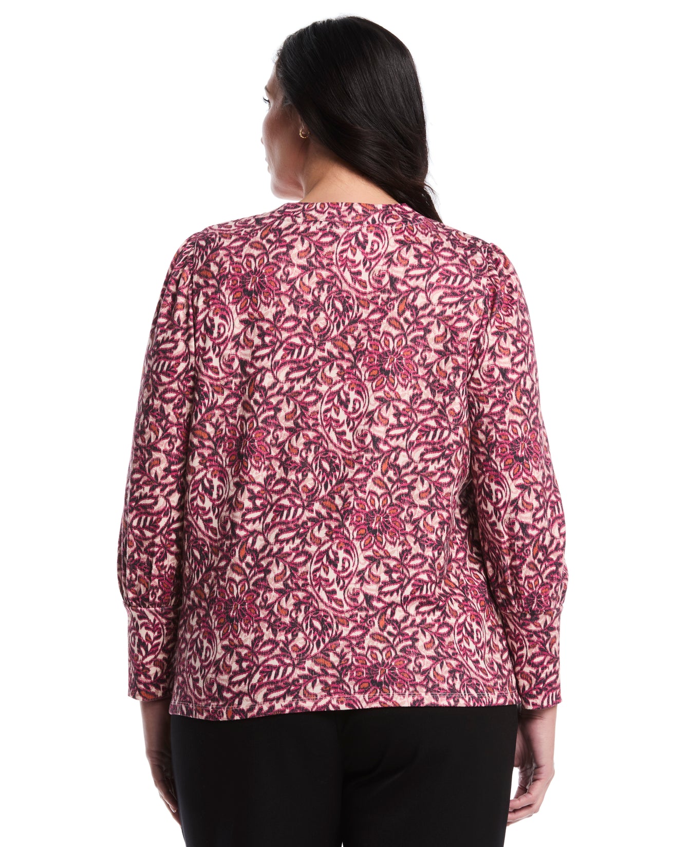 NEW! Plus Size Paisley Print Puff Sleeve Crew Neck Top