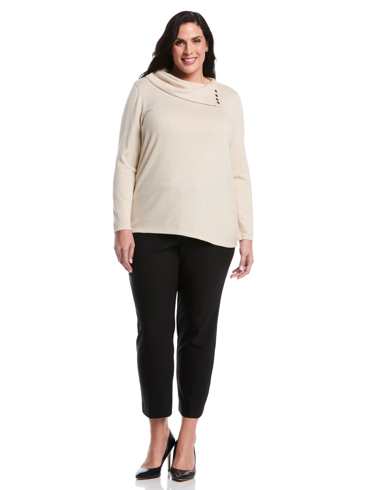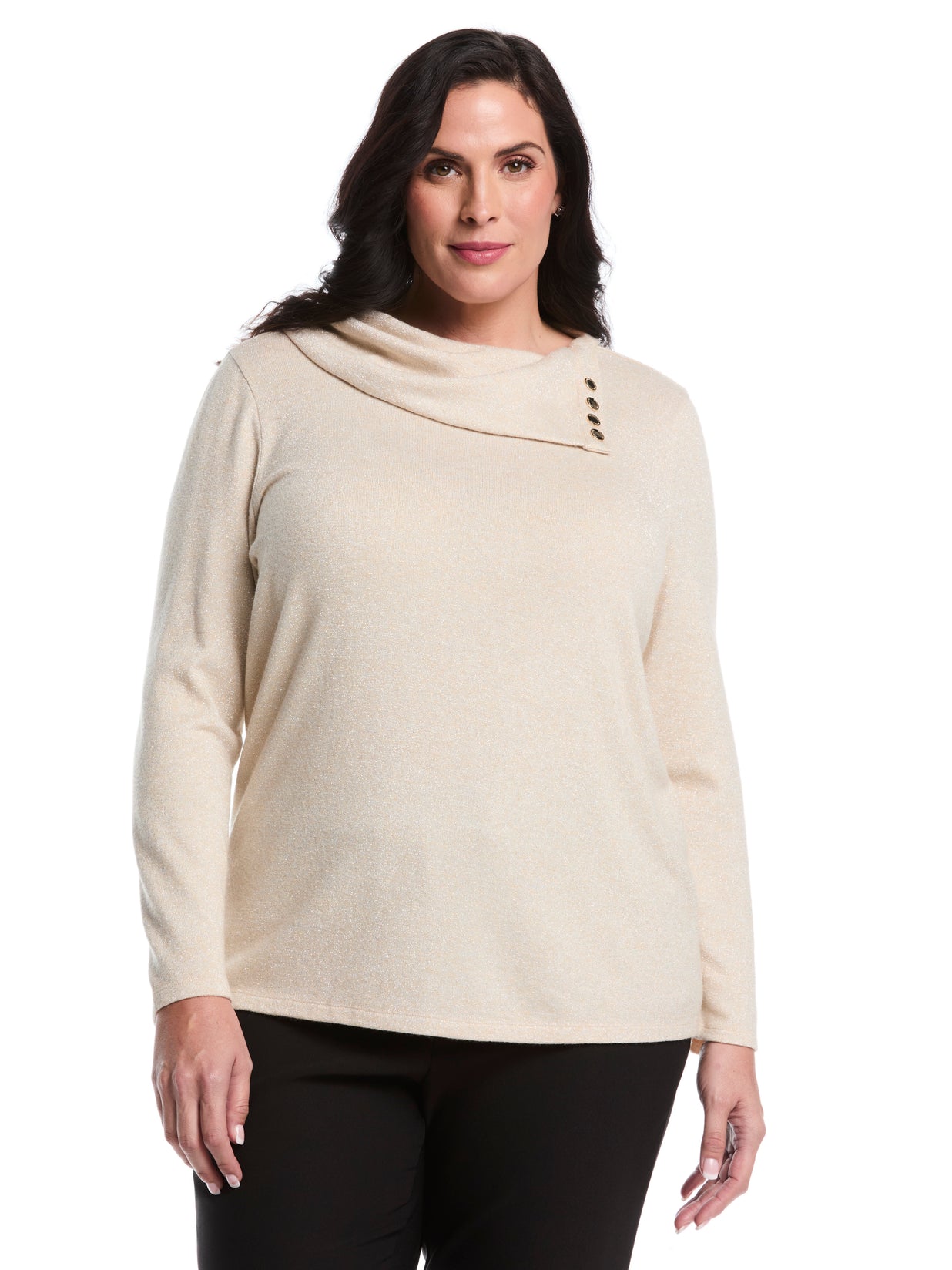 Update your cool weather wardrobe with this versatile and chic women's top from Rafaella. The textured fabric has a metallic finish give your outfit a touch of shine for a fresh look. This long sleeve women's top also features gold rivet detailing for a touch of edge. Plus, the classic fit and stretch fabric offers a comfortable fit and feel to take you through all-day wear with ease.