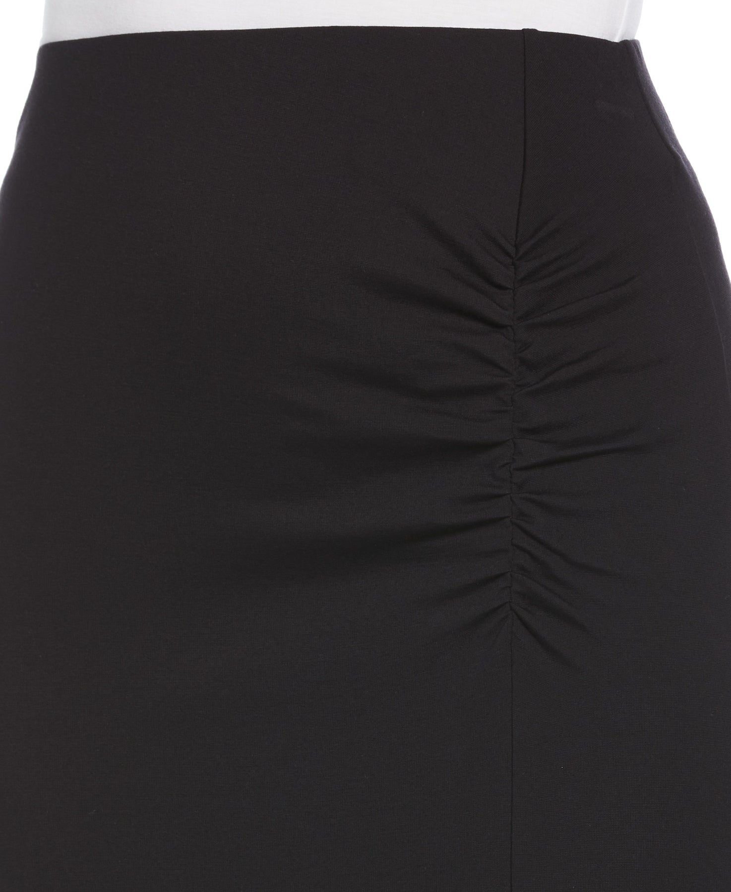 Ruching on the front adds an eye-catching textured accent to this versatile women’s skirt from Ella. Great for everyday wear both at the office and out on the town, the midi skirt has an easy pull-on waist and a front slit that lets you move freely through your day without feeling constricted. The skirt is made from ponte knit fabric, which gives it a sleek, structured look and a flattering hint of stretch.