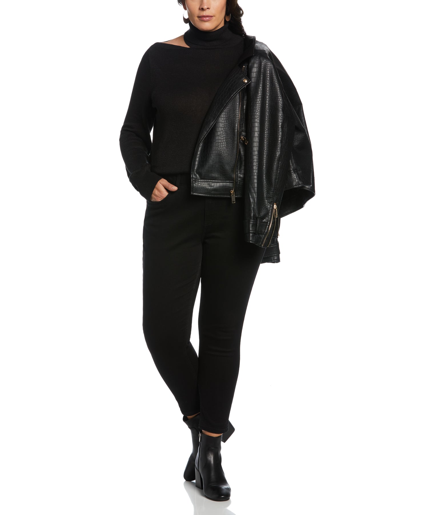 With a flirty asymmetrical shoulder cut out and dainty blouson at the cuffs, this rib trim Ella women's sweater is feminine and fun. The top features a super soft metallic Lurex knit and linen blend material. A stylish ribbed turtleneck keeps you warm and cozy through the cold months. It's perfect for layering and accessorizing to take this look from day to night.