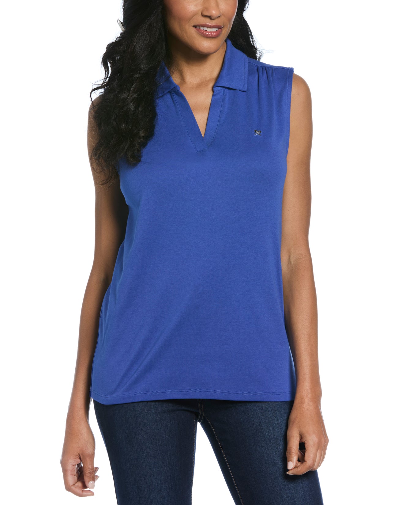 Stylish and versatile, this solid-colored women’s top from Rafaella is ideal for everything from sunny strolls through the park to busy days at the office. The women’s top is ribbed for a classic textured look, and it’s made with 100% cotton for breathable comfort. A metal logo charm at the left chest adds an eye-catching accent to the design.