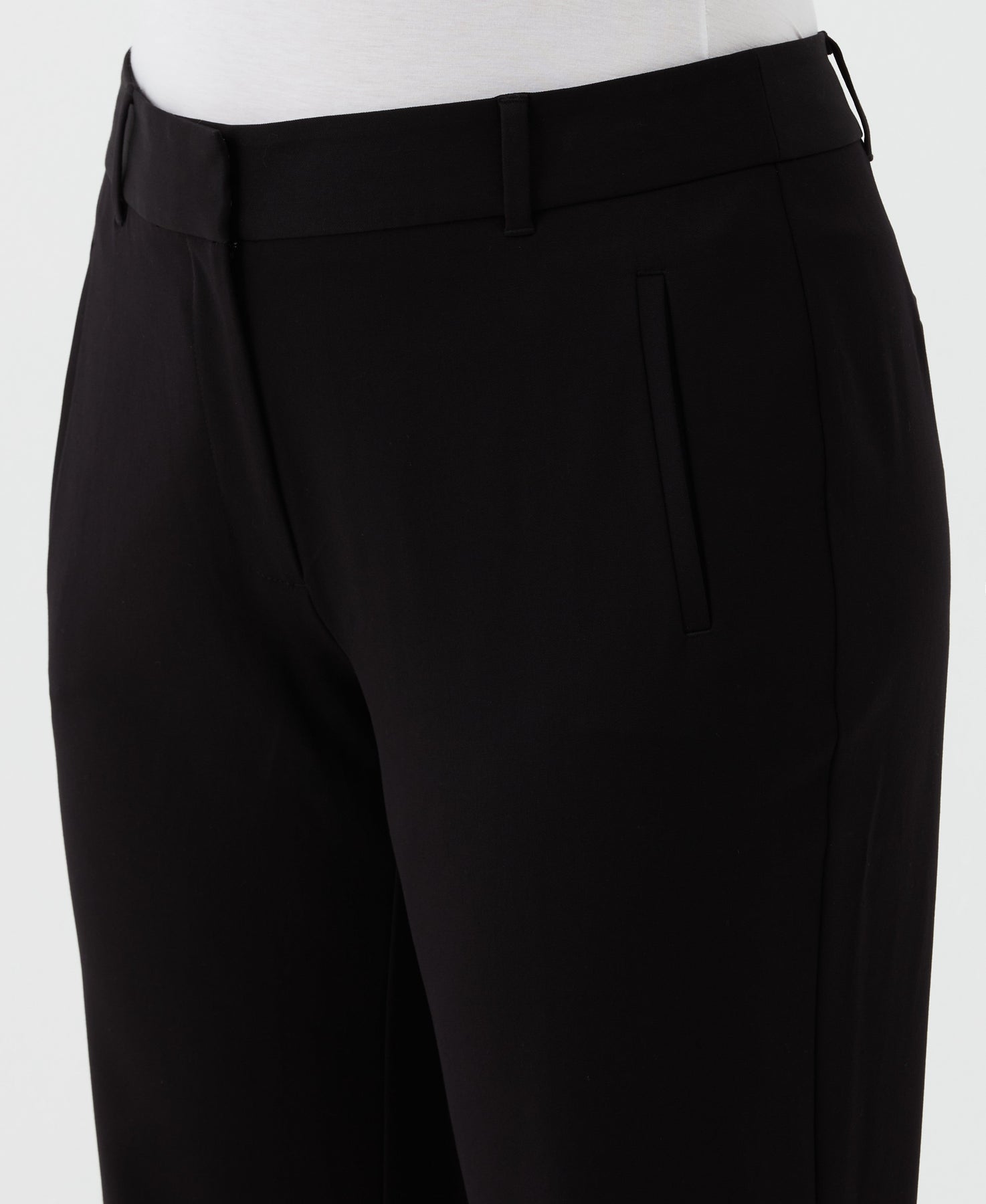 Functional and stylish, these Rafaella ladies' trousers are the ultimate wardrobe essential for working women. The ankle length design and classic fit can be paired with a range of shoes and tops in your wardrobe for versatile style while the hook and bar closure and front welt pockets provide added practicality and convenience. The slimming panel and faux back pockets on these pants for women help ensure a smooth silhouette while the belt loops and back darts provide a tailored fit and a polished finishing touch. Crafted from high-quality and comfortable gabardine fabric, these trousers for women have an flattering look you can wear from the office to an evening event with ease.