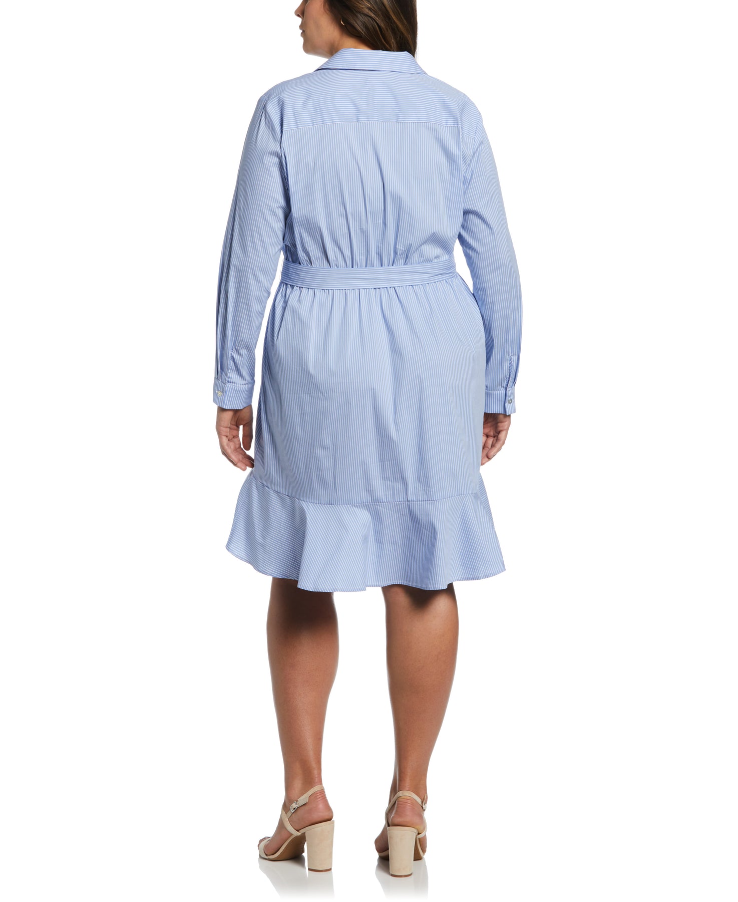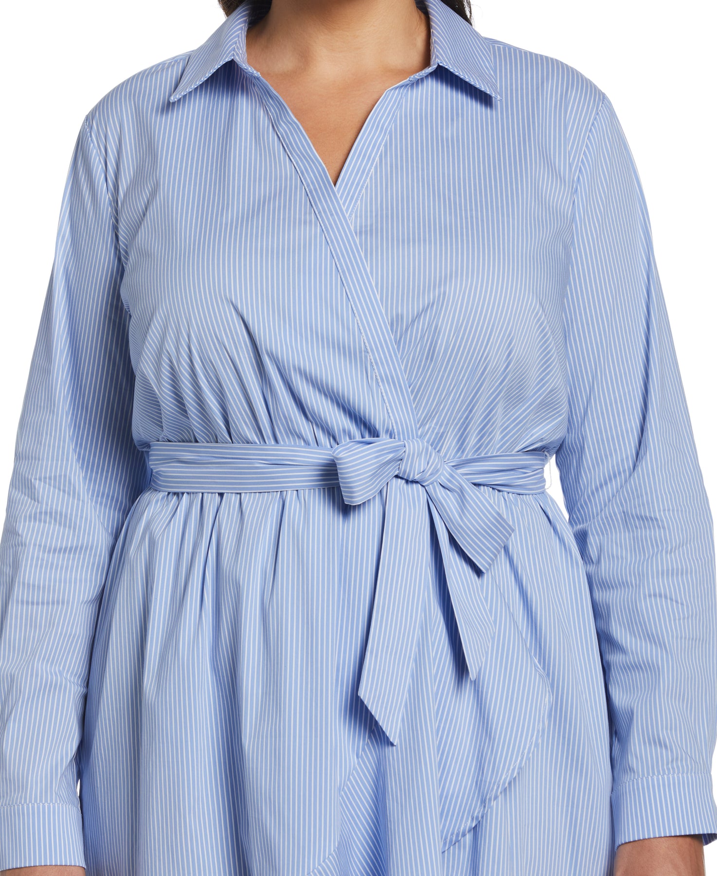 Combining several classic dress styles in one easy-to-wear design, this striped Rafaella day dress offers a shirt-style top, a flattering wrap front and a flouncy ruffled skirt. A smart addition to your wardrobe in any season, it’s crafted from a soft and lightweight poplin fabric. The dress has a comfortable elasticized waist, and a self-fabric tie makes it easy to customize the look.