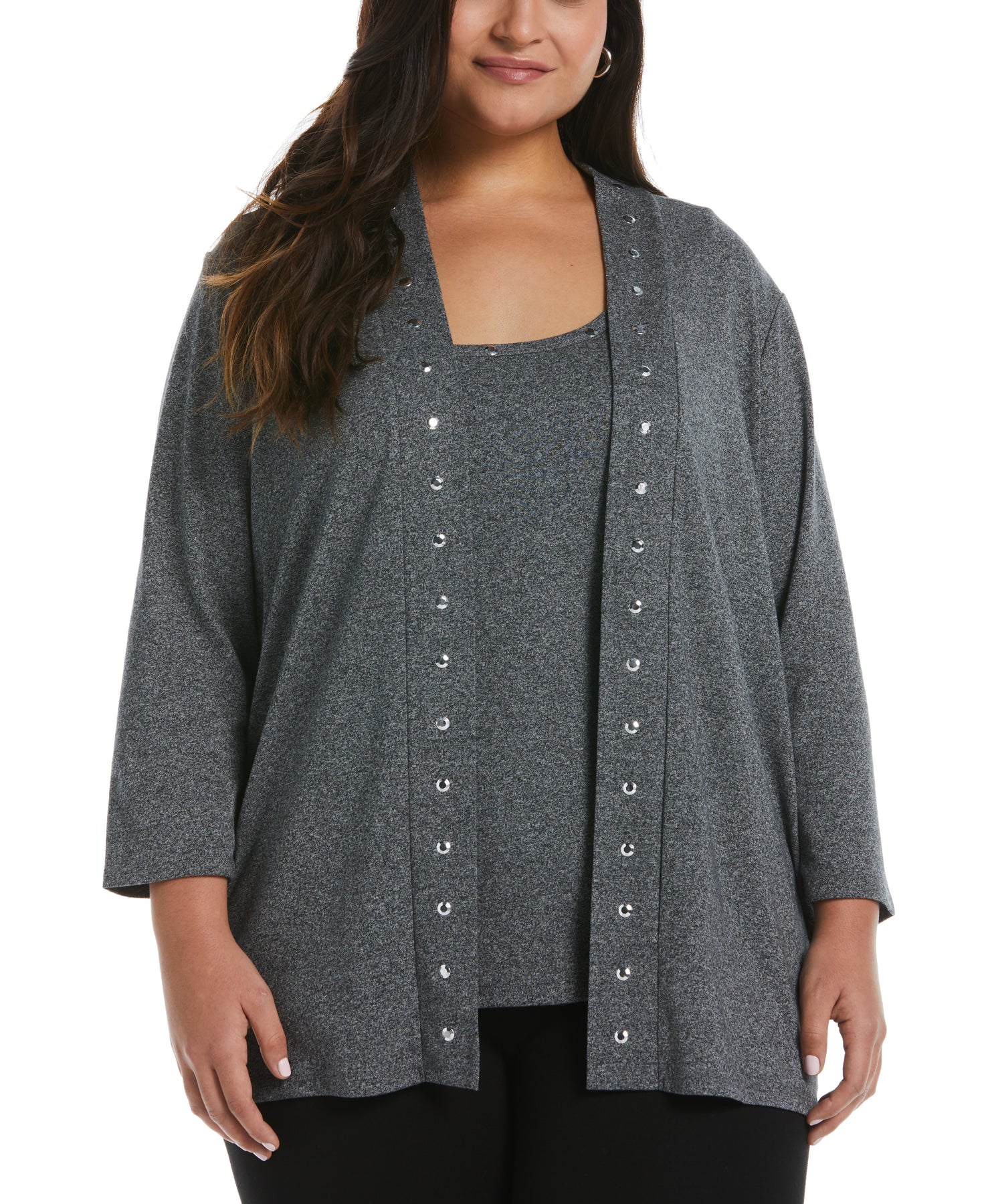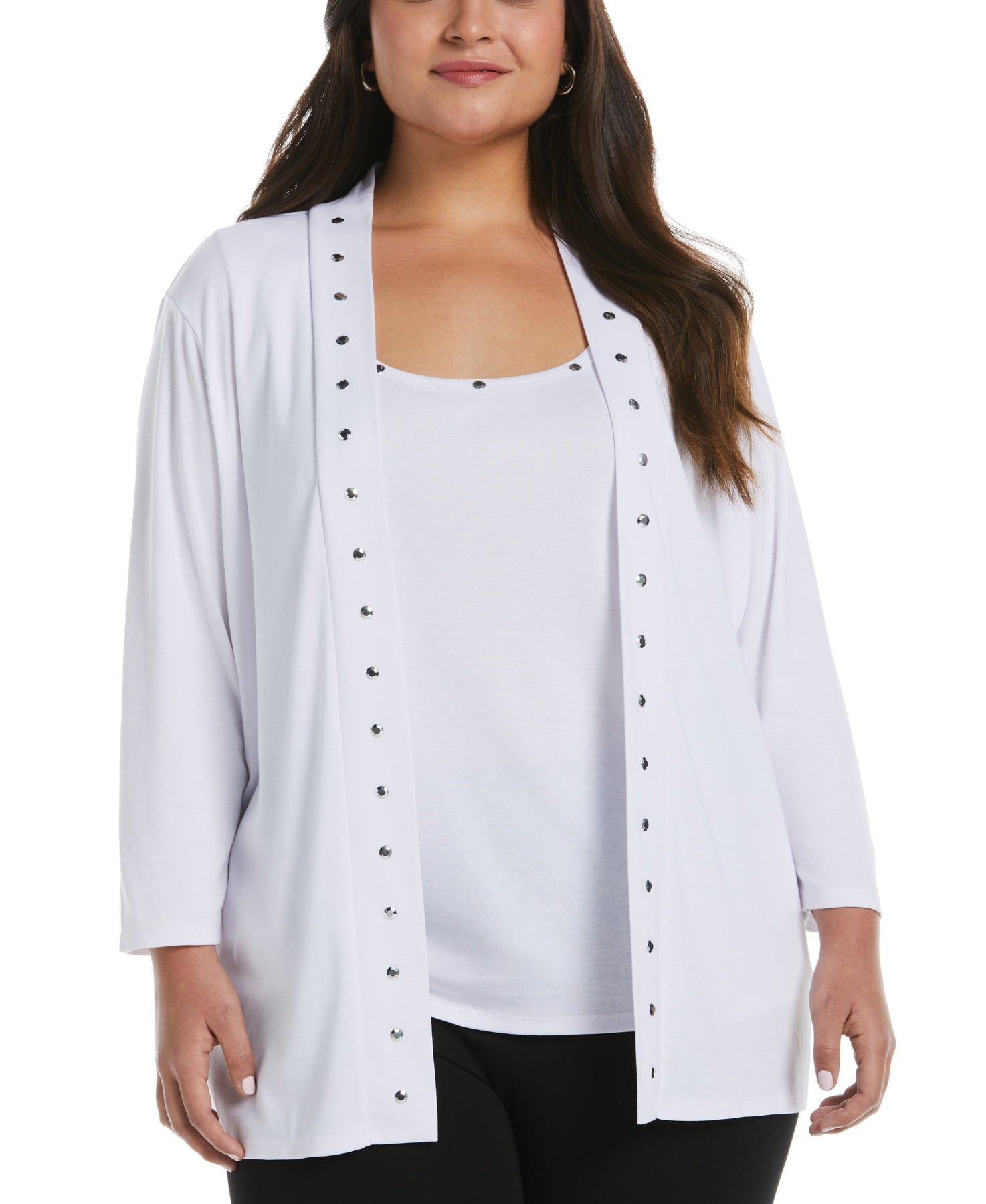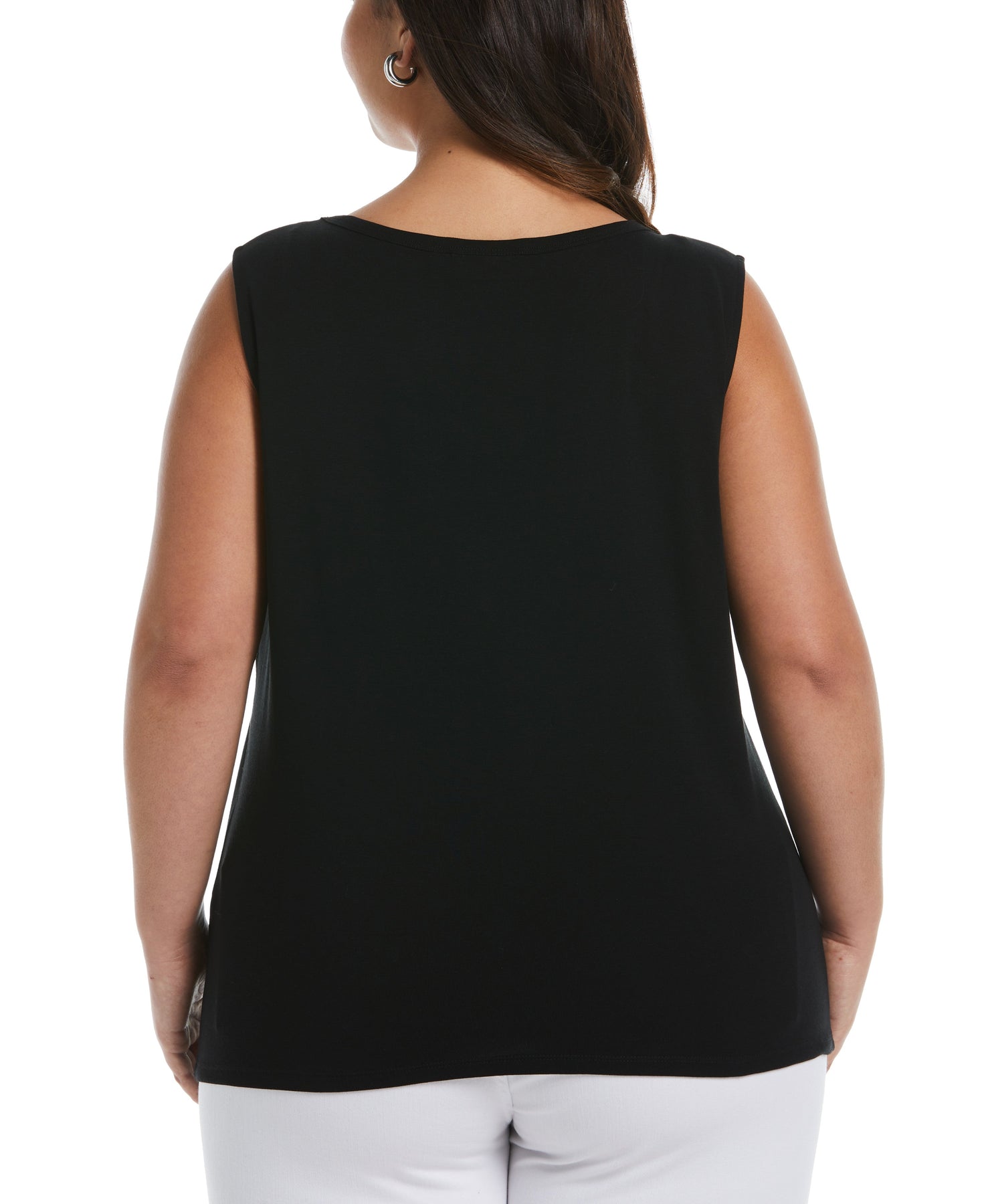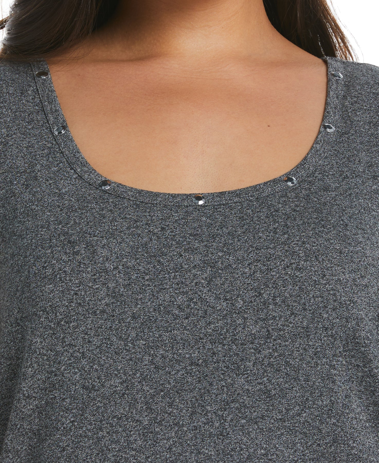 Silver-toned studs along the front neckline add some subtle edge to this versatile women’s tank top from Rafaella. Ideal for layering under a cardigan at the workplace or dining out with friends, this ladies’ top has a comfortable classic fit. The women’s sleeveless top is crafted from a ribbed fabric for a textured look and has a hint of flattering stretch.